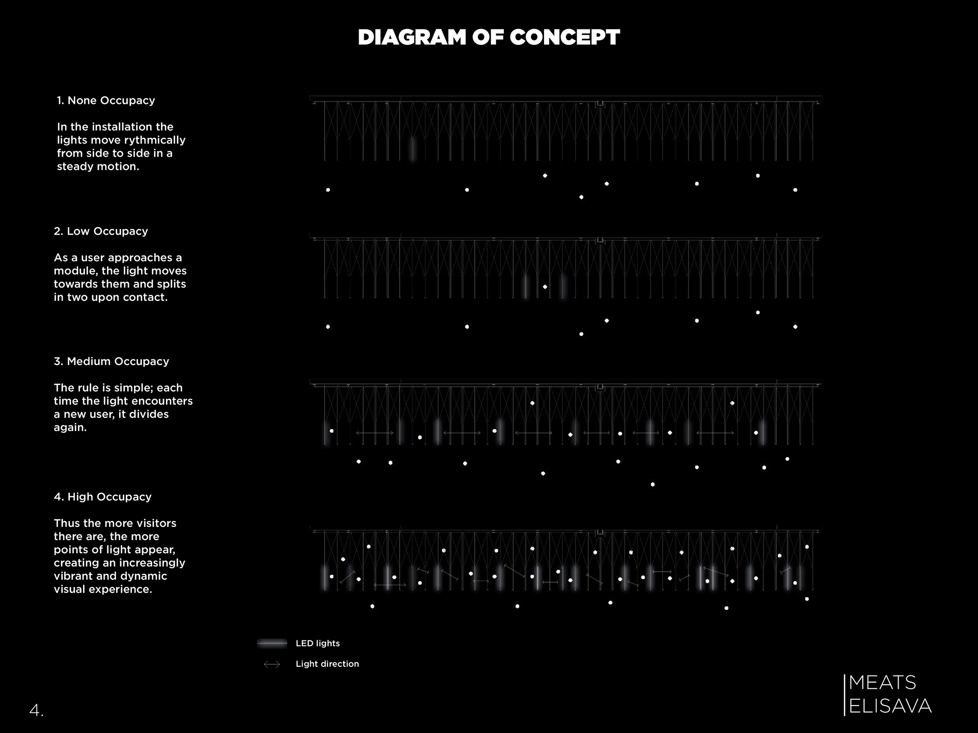 2. Multilayered Projection: Self and Others Side the installation, participants experience an intimate engagement with their own shadows alongside those of others, symbolizing the tension between personal and collective identity. This perspective underscores the fluid boundaries between self-perception and external influence, hinting at the ways personal identity evolves in response to others